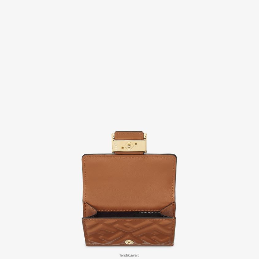Fendi بني نحيف محفظة باجيت مايكرو ثلاثية الطي من جلد نابا RTJZ1452 مُكَمِّلات