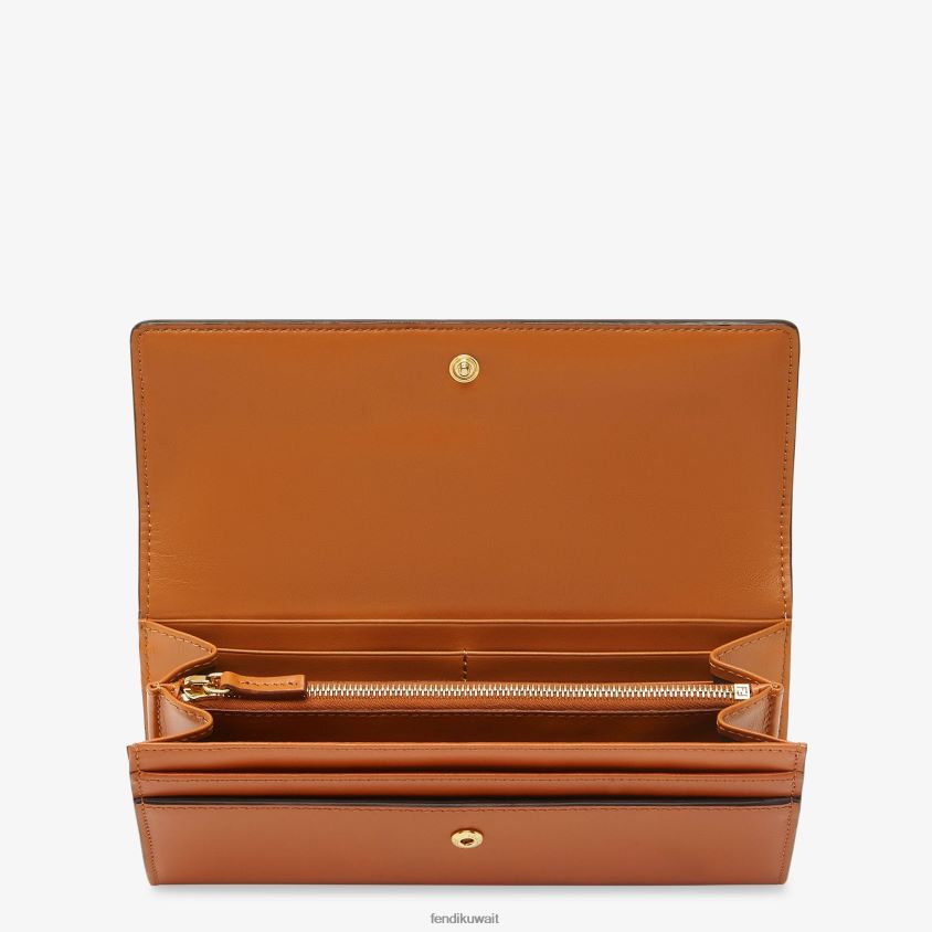 Fendi بني نحيف محفظة جلدية كونتيننتال RTJZ1489 مُكَمِّلات