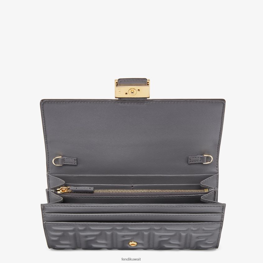Fendi رمادي نحيف محفظة باجيت كونتيننتال مع سلسلة من جلد نابا RTJZ1536 مُكَمِّلات