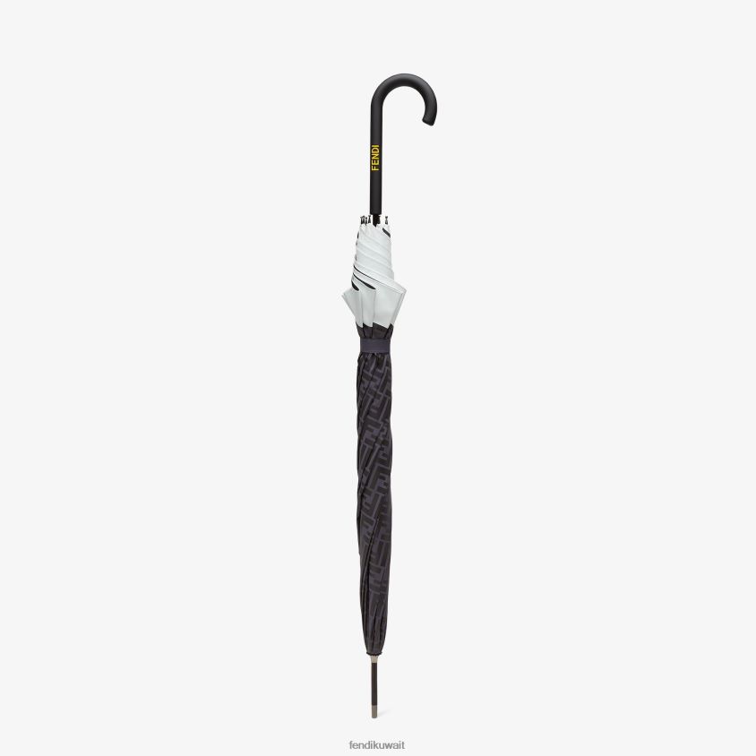 مظلة كبيرة مصنوعة من قماش التكنولوجيا السوداء مع شعار ff. مزخرف بحافة بيضاء محكمة الغلق بالحرارة.