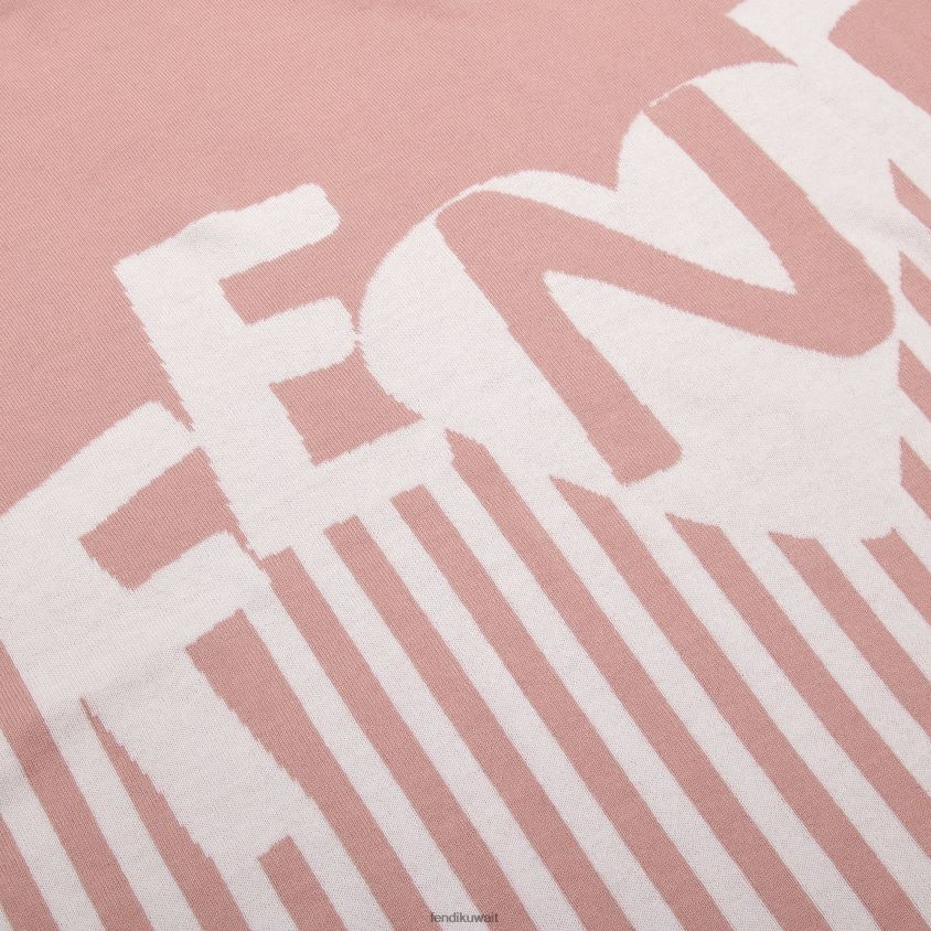 بطانية أطفال من القطن والكشمير باللون الوردي مع إنتارسيا حروف فندي باللون الوردي والخطوط البيضاء.