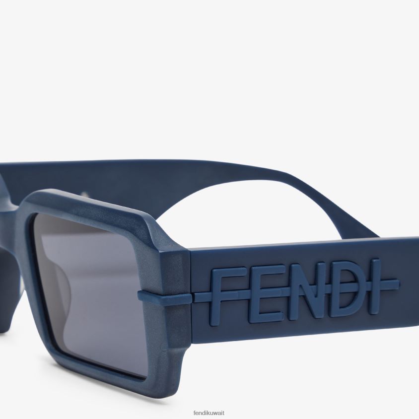 نظارات شمسية مستطيلة من الأسيتات باللون الأزرق. أذرع عريضة مع حروف فندي معدنية مطلية بالمينا باللون الأسود. عدسات زرقاء.