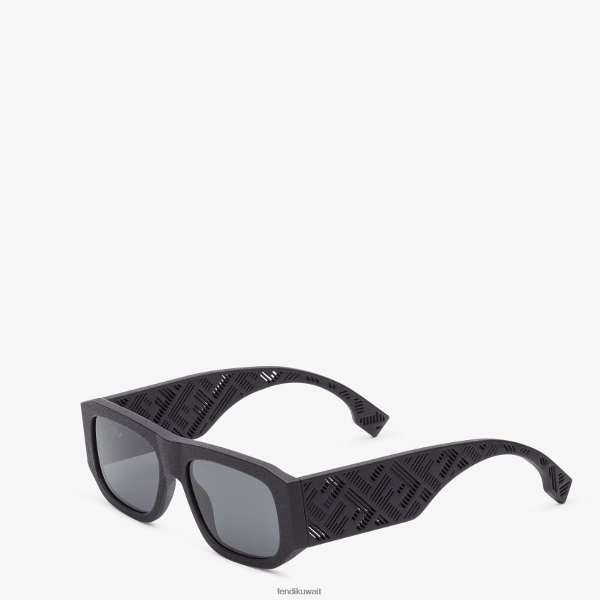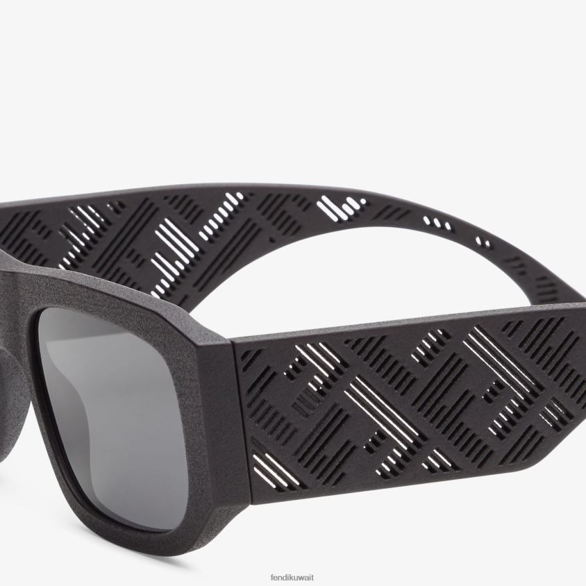 نظارة فندي مستطيلة الشكل. مصنوع من النايلون الأسود باستخدام تقنية الطباعة ثلاثية الأبعاد وملمس مخطط على الأذرع. عدسات رمادية.