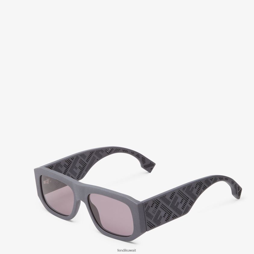 نظارة فندي مستطيلة الشكل. مصنوع من النايلون الرمادي باستخدام تقنية الطباعة ثلاثية الأبعاد وملمس مخطط على الأذرع. عدسات باللون البنفسجي.