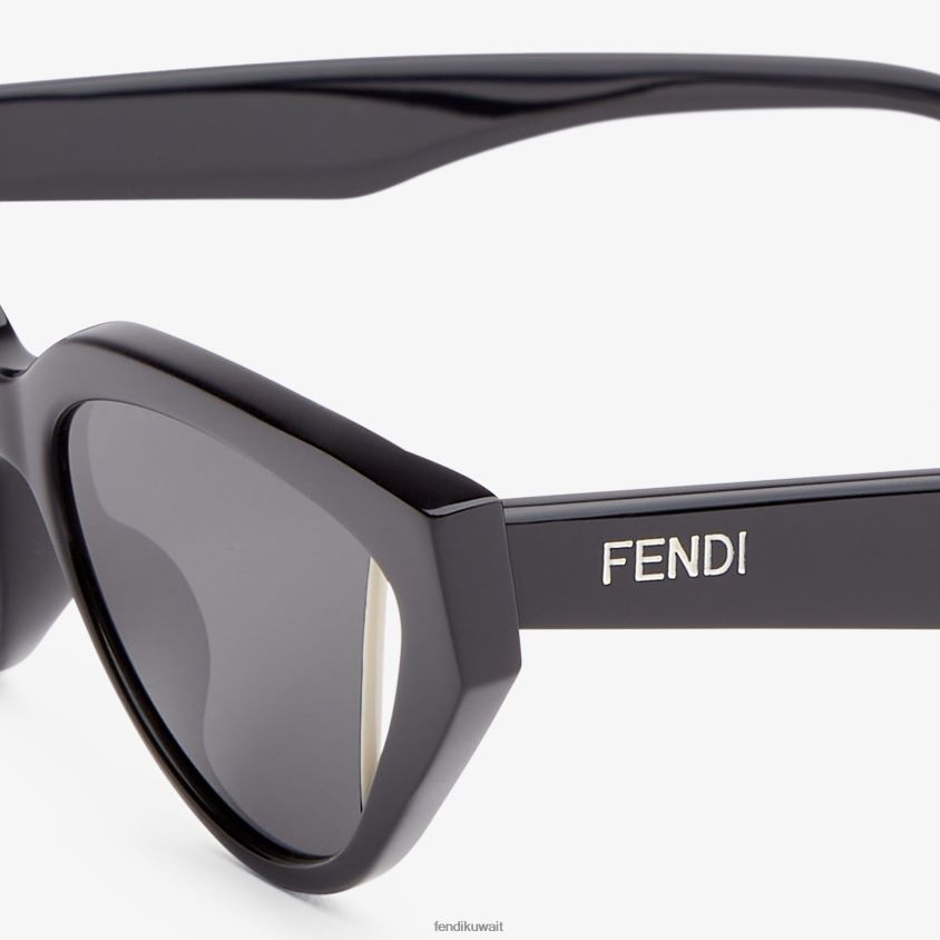 تم تقديم هذه النظارات الشمسية على شكل عين القطة من الأسيتات الأسود في عرض أزياء خريف/شتاء 21، وتتميز بعدسات رمادية داكنة مقطوعة قطريًا مع حدود بيضاء.